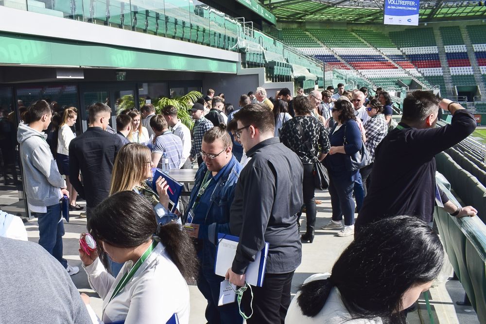 Rund 500 Jugendliche im 1. und 2. Lehrjahr aus der überbetrieblichen Berufsausbildung nutzten am 8. Mai ihre Chance, um sich bei der großen Lehrstellenbörse „Volltreffer“, die vom AMS Wien und dem Wiener ArbeitnehmerInnen Förderungsfonds organisiert wurde, direkt bei rund 40 Unternehmen um eine Lehrstelle zu bewerben. Wirtschaftsstadträtin Renate Brauner und die Landesgeschäftsführerin des AMS Wien, Petra Draxl, nahmen die offizielle Eröffnung im Allianz Stadion von Rapid Wien vor.