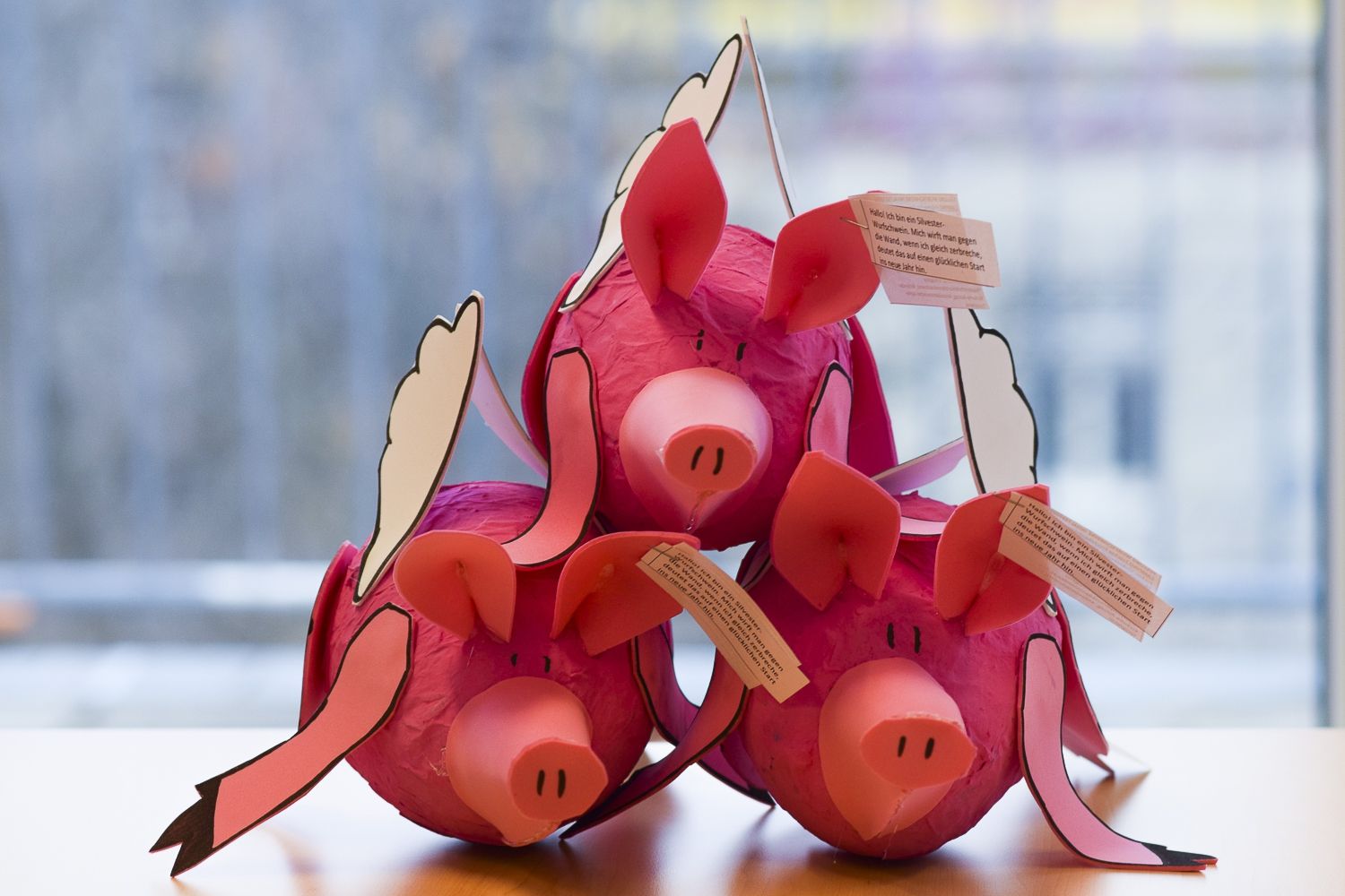 Mit gefüllten und in Handarbeit angefertigten Wurfschweinen aus der Werkstätte und Tagesstruktur Wurlitzergasse!