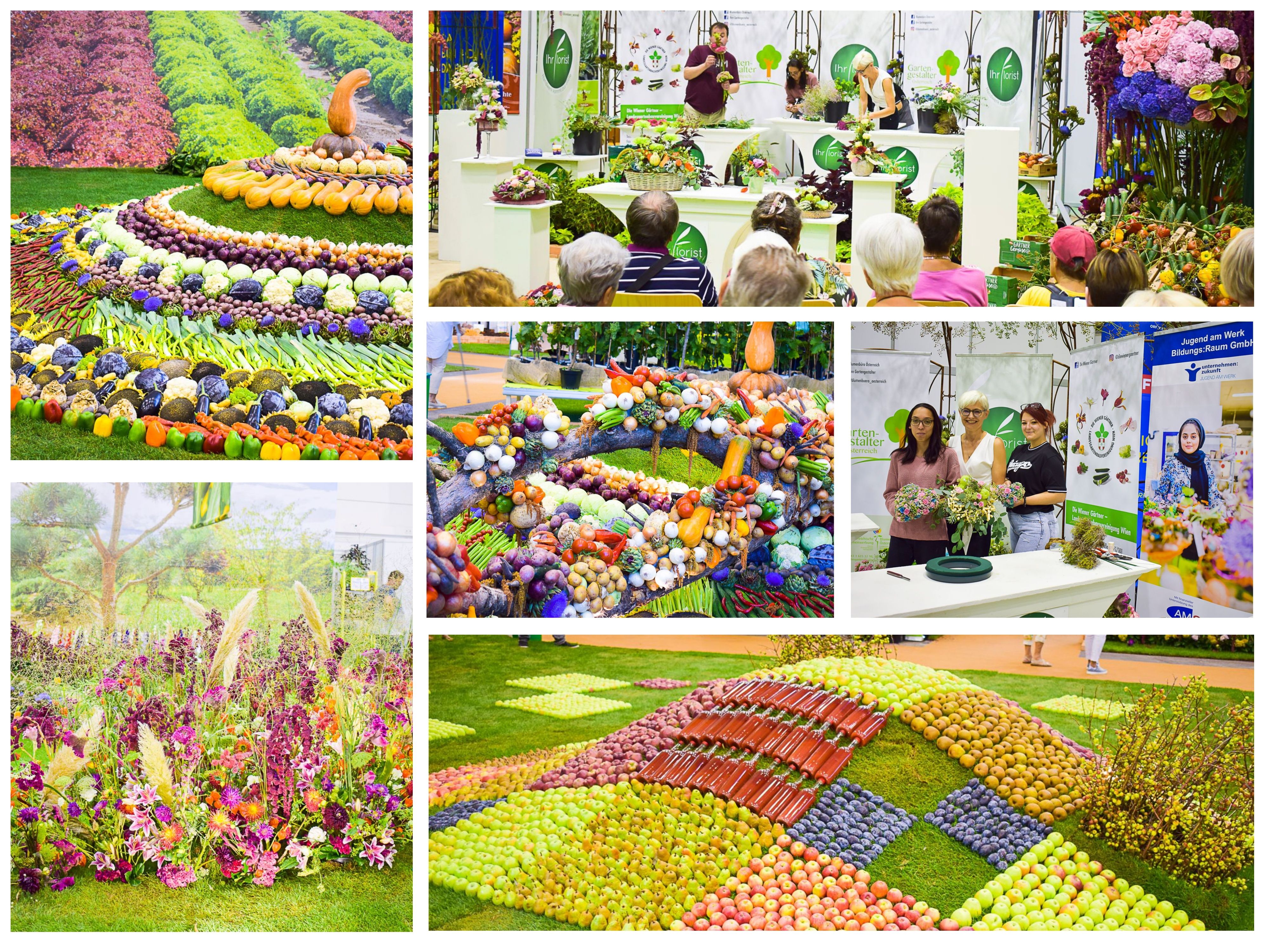 Erstmals waren heuer zwei Floristik-Lehrlinge (Dana und Kathi, beide im dritten Lehrjahr) mit ihrer Ausbilderin Ulrike Moosbrugger aus dem Lehrbetrieb WTB auf Einladung von Blumenbüro Österreich und der Landesgartenbauvereinigung Wien bei der großen internationalen Gartenbaumesse in Tulln Anfang September vertreten. Die Lehrlinge unterstützten nicht nur bei den tagelangen Vorbereitungen der eindrucksvollen Schauobjekte, bei denen hunderte Obst- und Gemüsesorten geordnet, geschlichtet und händisch gesetzt wurden, sondern waren auch an allen Ausstellungstagen auf der Bühne des ORF NÖ mit einer Floristik-Show vertreten. Bei diesen täglichen Floristenshows wurde das Floristik-Handwerk den interessierten Zusehenden live präsentiert.