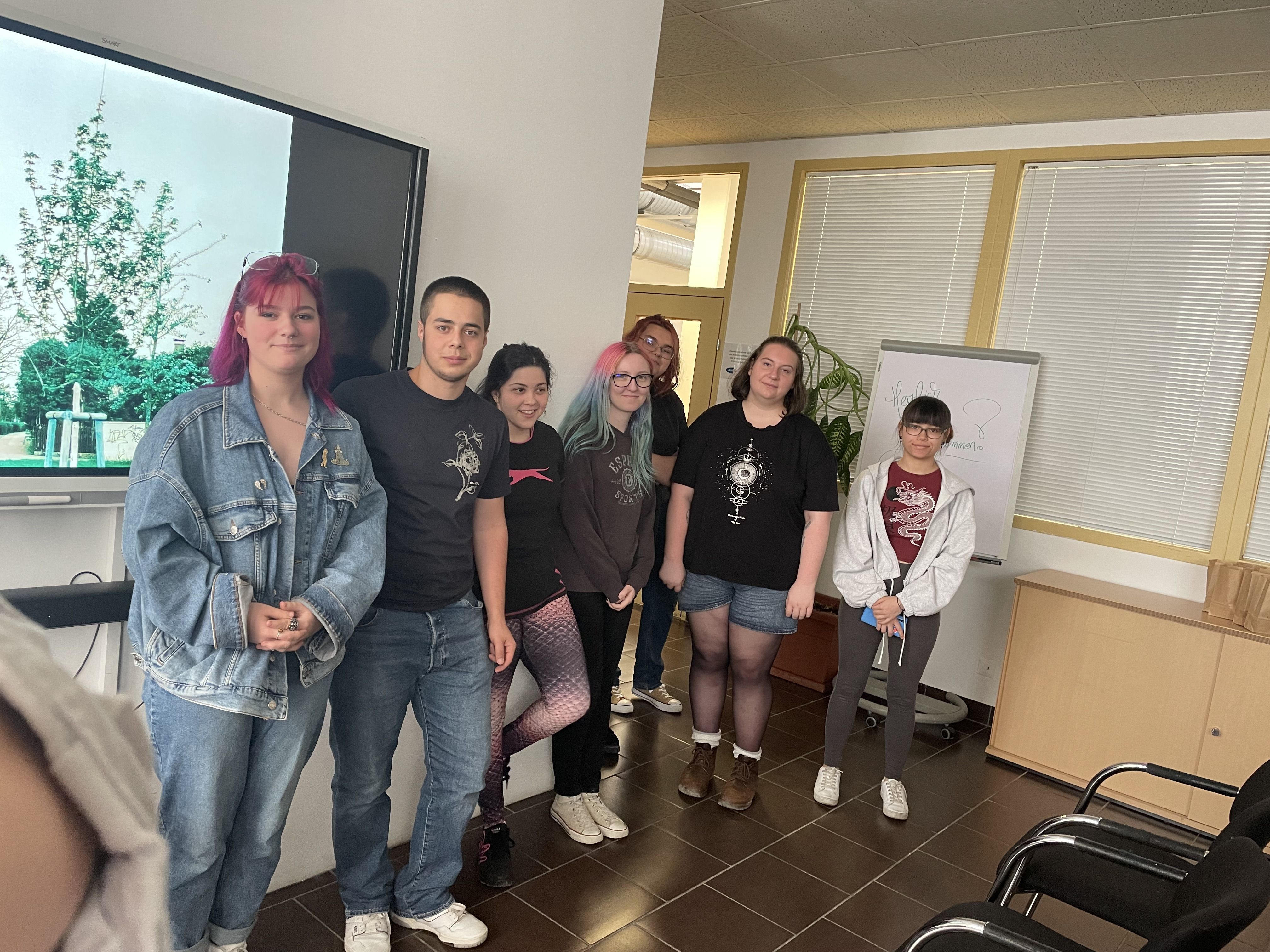 Mit Tobias, Jasmin und Yana gab es im Anschluss an die Vorführungen kurze Gespräche und die Jugendjury hatte dazu Fragen vorbereitet, ergänzt um Fragen der Lehrlinge im Publikum. Dabei ging es um Drehbuchschreiben, Drehgenehmigungen-Einholen, Finden von Schauspieler:innen und um verschiedene Träume, Realitäten und offene Enden.