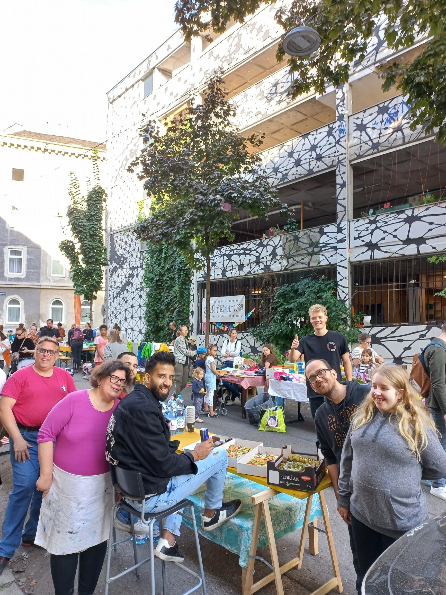 Das Kaffeehaus der Tagesstruktur Grundsteingasse buk einen wunderbaren, riesigen Schokokuchen für das Fest. Die Buddys der praktischen Berufsorientierung unterstützten die Gebietsbetreuung Ottakring und achteten darauf, dass alle Wünsche in der Garage erfüllt wurden. Second Chance on Tour war gemeinsam mit der Molkibar von der Tagesstruktur Molkereistraße im Einsatz und es gab inklusives „Easy Yoga“ mit Isabel Mederle vom BeWo Berggasse. Außerdem nutzten einige Teilnehmer:innen der Tagesstruktur Grundsteingasse die Gelegenheit und besuchten in dieser Woche die Garage samt dem vielseitigen Programm.