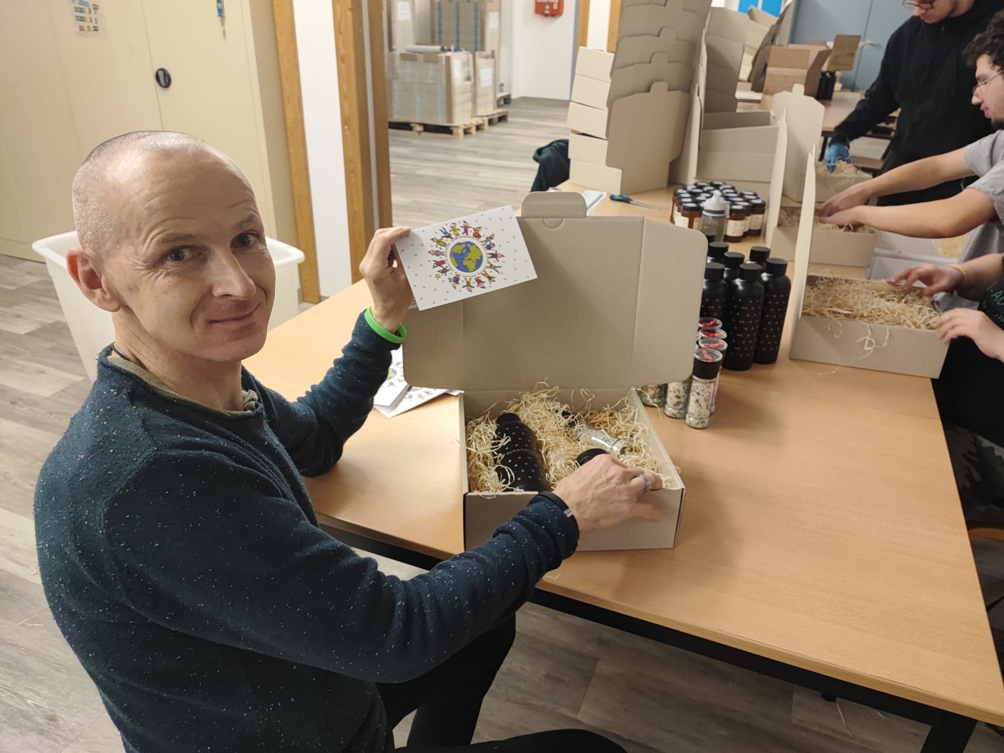 Das Ergebnis kann sich sehen lassen, denn es wurden insgesamt 620 Kräutersalze angefertigt und zusätzlich in der gleichen Anzahl Weihnachtspakete (Kartons mit kleinen Aufmerksamkeiten) für die Firma Schachinger zusammengestellt. Die Teilnehmer:innen erfüllte es mit Stolz, dass auch das Kräutersalz Teil der Weihnachtspakete war. Wir sagen Danke für diese nette Kooperation auf Augenhöhe!