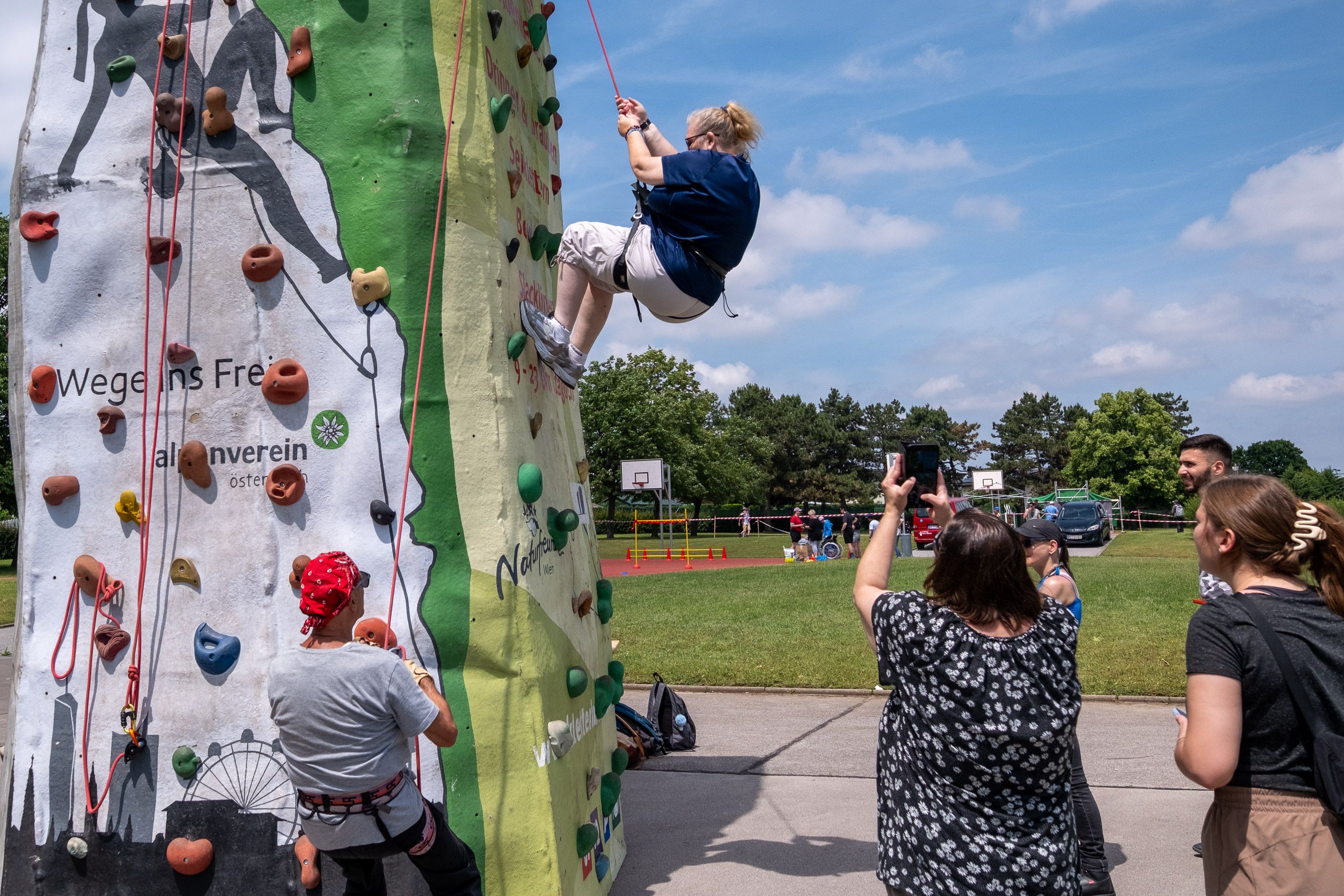 Über den Tag verteilt nahmen mehr als 650 Mitarbeiter:innen und Teilnehmer:innen aus beiden GmbHs an den Wettbewerben teil und schon im Vorfeld und am Tag selbst halfen und unterstützten Kolleginnen und Kollegen aus dem Organisationsteam (Tagesstrukturen Elisenstraße, Molkereistraße, Hirschstetten, Rudolf-Virchow-Straße, Ayrenhoffgasse, ALPHA, Thermensiedlung, Jedlesee und Altmannsdorf sowie vom Fahrtendienst) bei den Vorbereitungen sowie der Betreuung der Sportstationen.