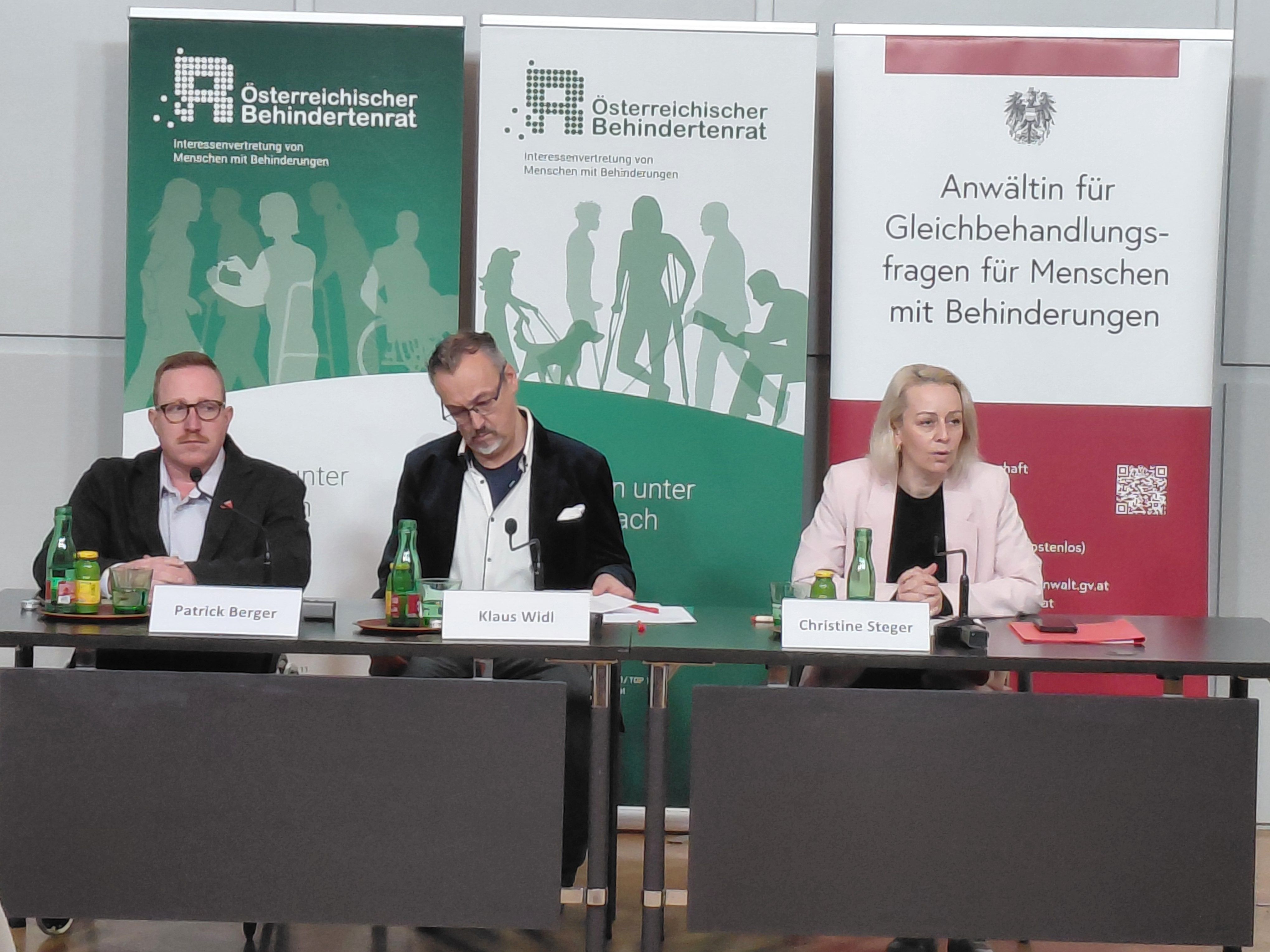 Bei einer Pressekonferenz am 2. März im Presseclub Concordia wurde die aktuelle Situation von Menschen mit Behinderungen diskutiert. Am Podium sprachen Klaus Widl, Präsident des Österreichischen Behindertenrats, Christine Steger, Bundesbehindertenanwältin, sowie Patrick Berger, Leiter des Chancen Nutzen Büros im Österreichischen Gewerkschaftsbund (ÖGB).