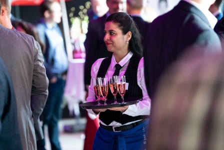 Ausgezeichnetes Service erfolgte zudem durch Lehrlinge und erwachsene Teilnehmerinnen und Teilnehmer des Lehrbetriebs ZOBA, die das selbst zubereitete warme Fingerfood, Cocktails sowie kaltes Fingerfood aus der Werkstätte und Tagesstruktur Molkereistraße servierten.