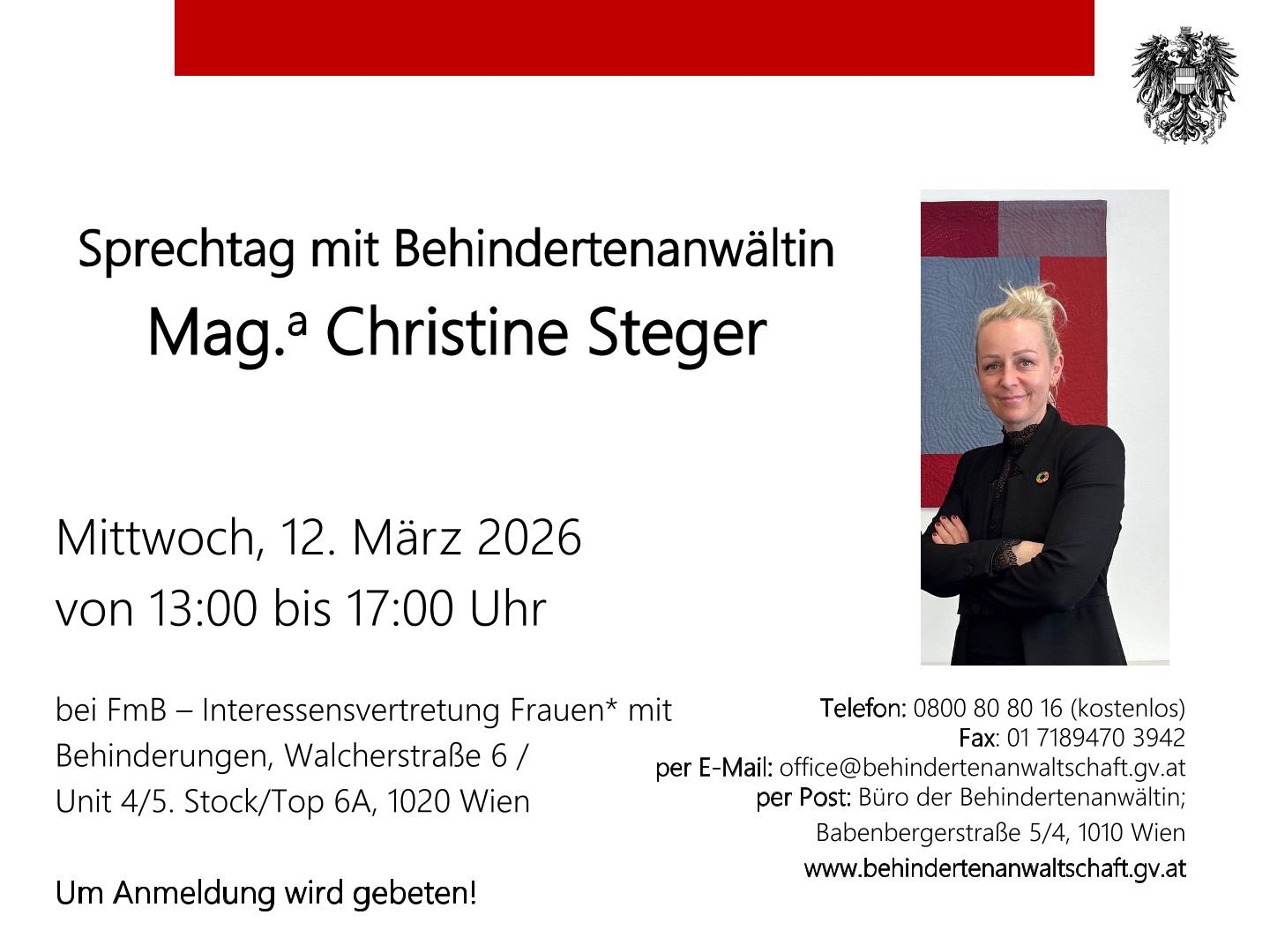 Sprechtag mit Behindertenanwältin Mag.a Christine Steger