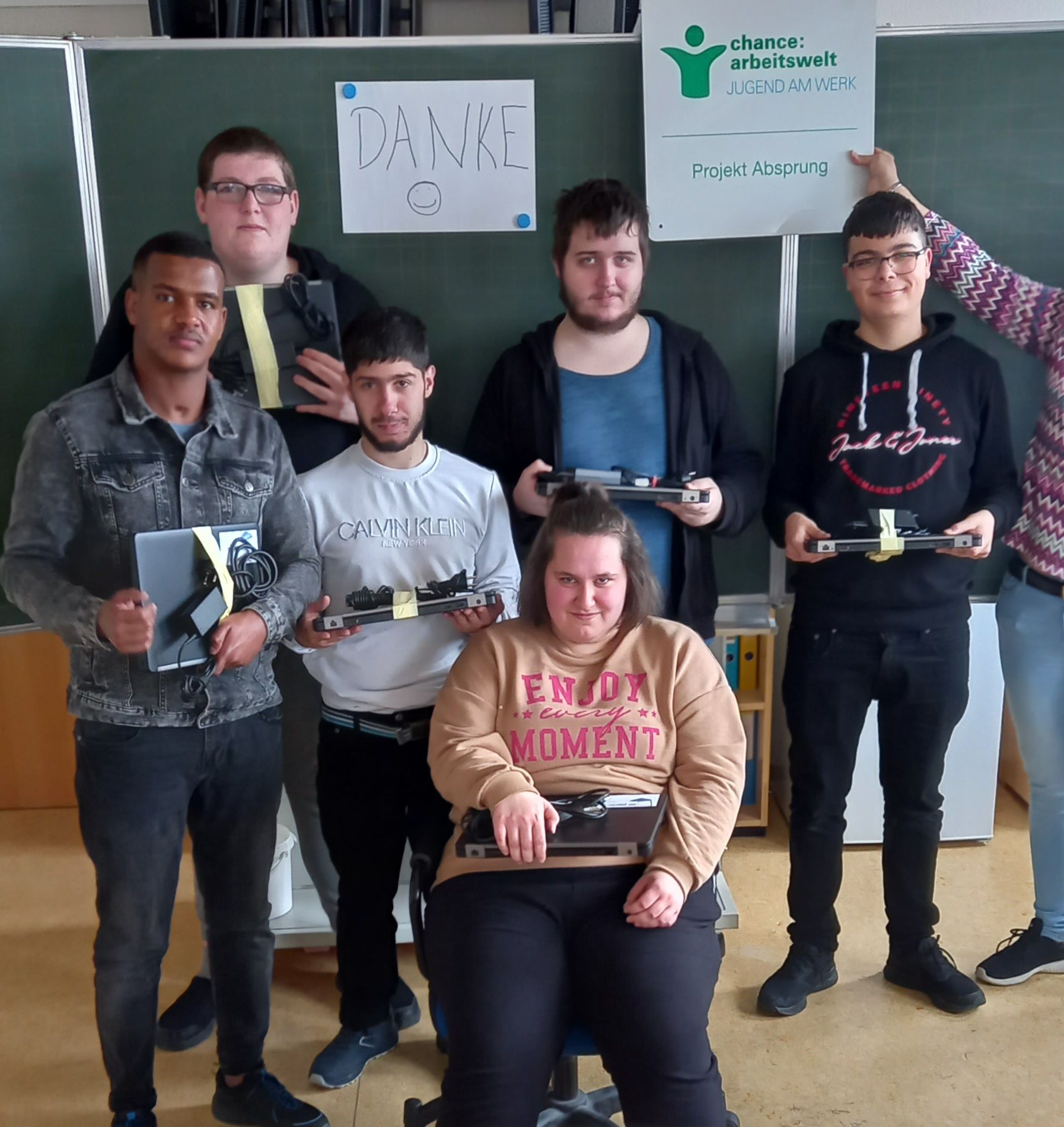 So wird die Chancengleichheit von Menschen gefördert und im März 2023 haben 14 Teilnehmer:innen des Projekts Absprung sowie der Werkstätte Horizont Laptops für ihre berufliche Ausbildung und Qualifizierung erhalten und wir möchten uns dafür herzlich bedanken!