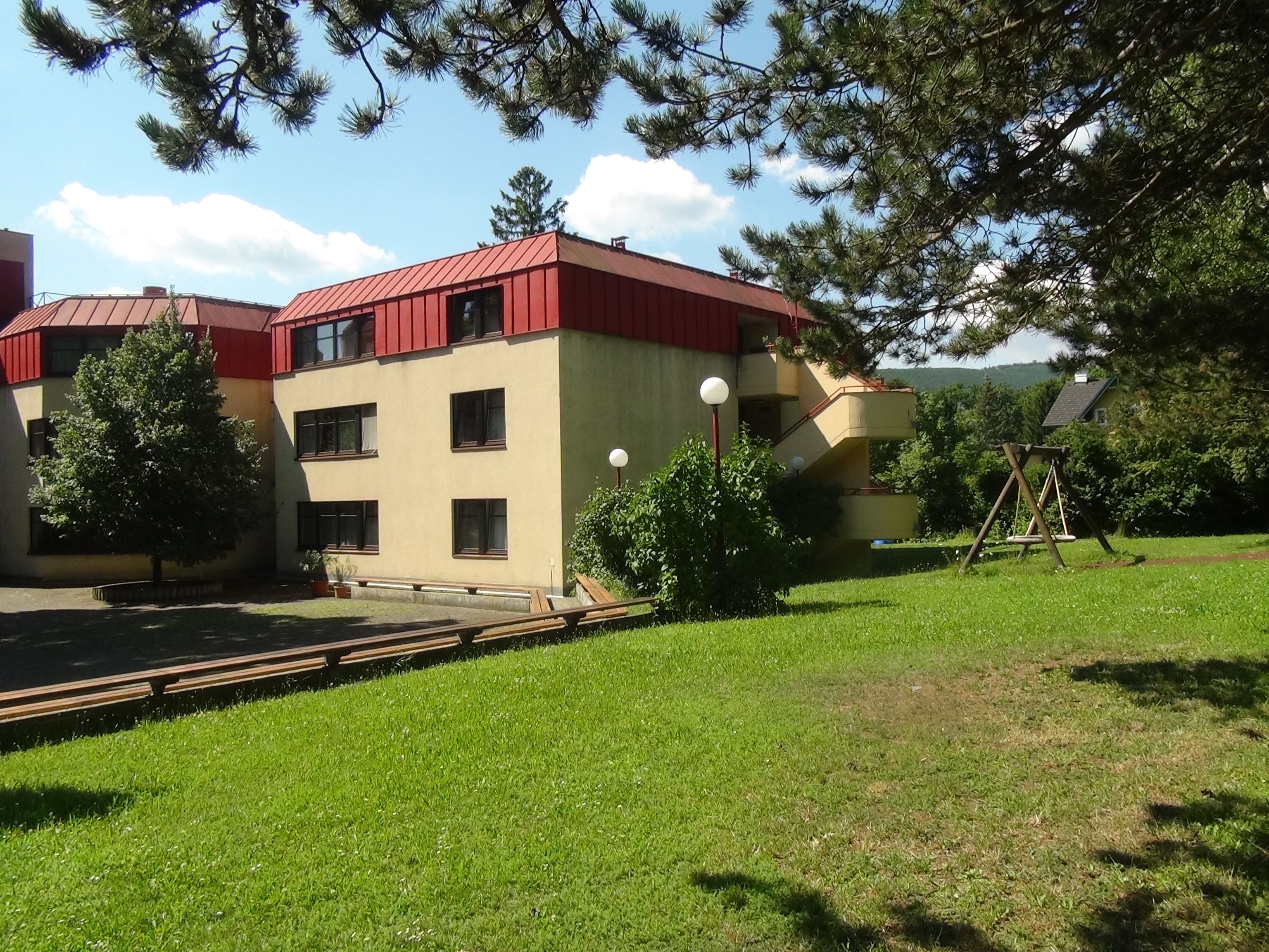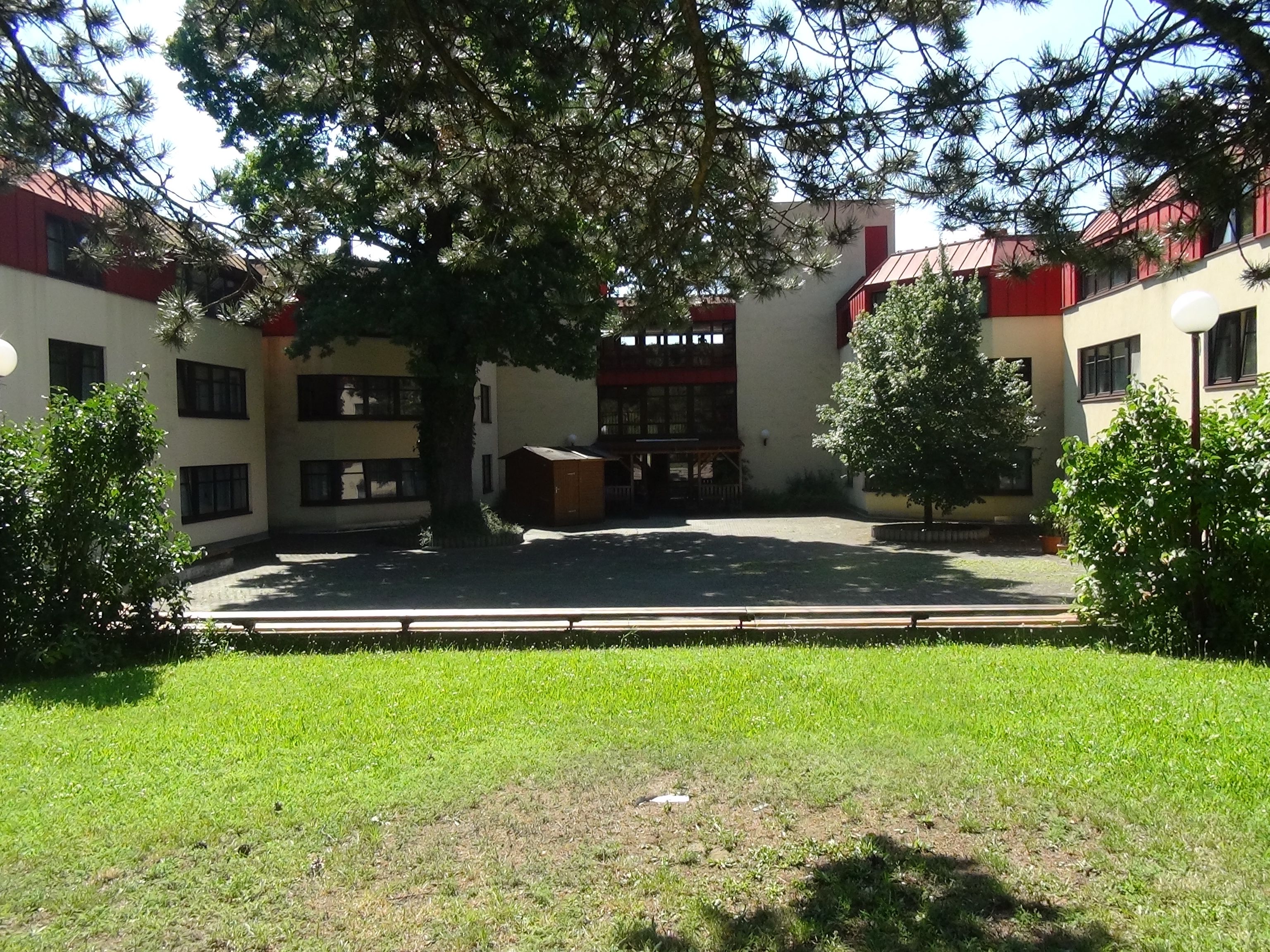 Ein weitläufiger Garten bietet den Bewohnerinnen und Bewohnern Gelegenheit zur Entspannung und Platz für sportliche Aktivitäten.