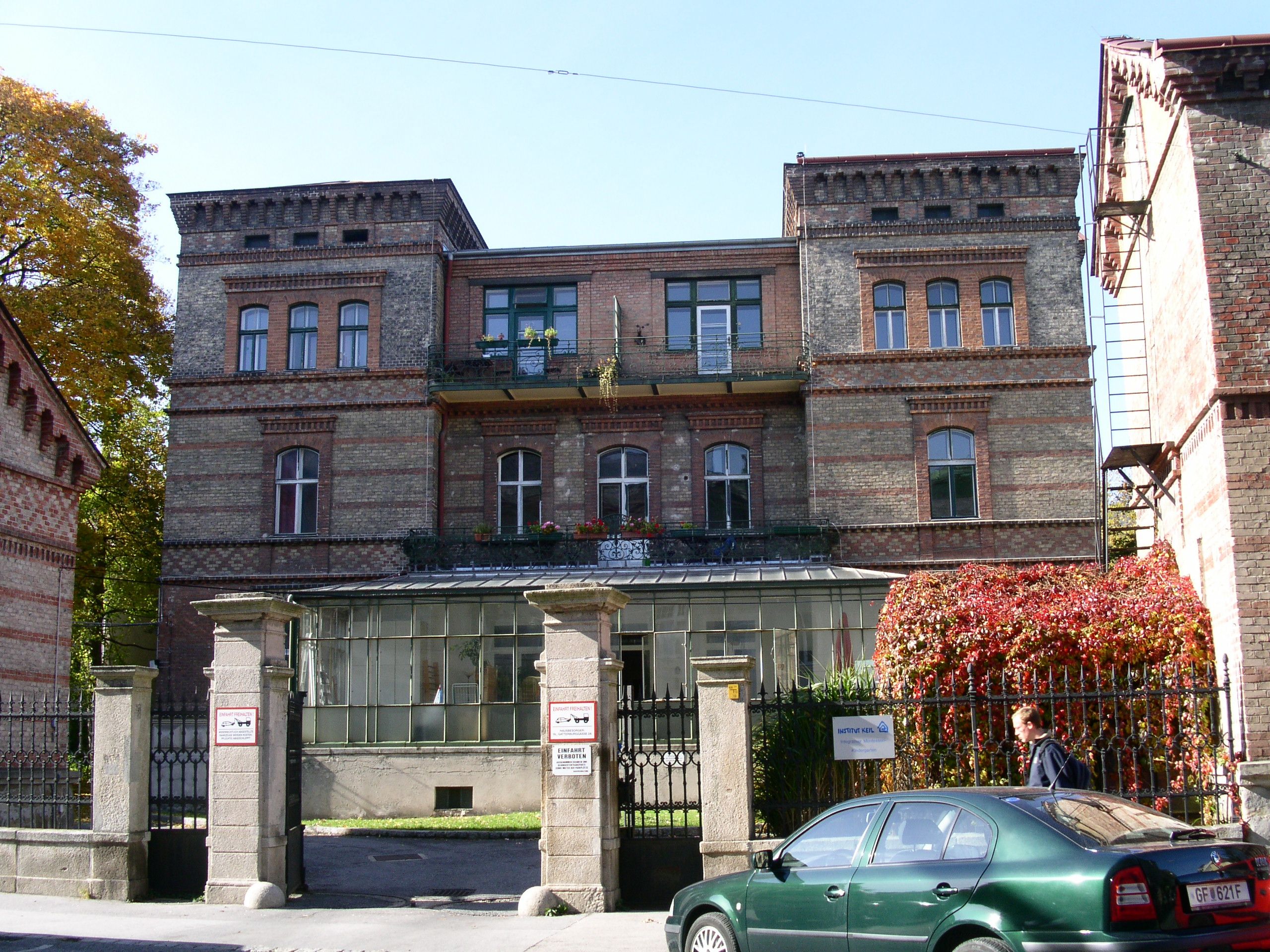 Diese Wohngemeinschaft liegt in einem alten Backsteingebäude inmitten eines Gartens im 19. Bezirk.