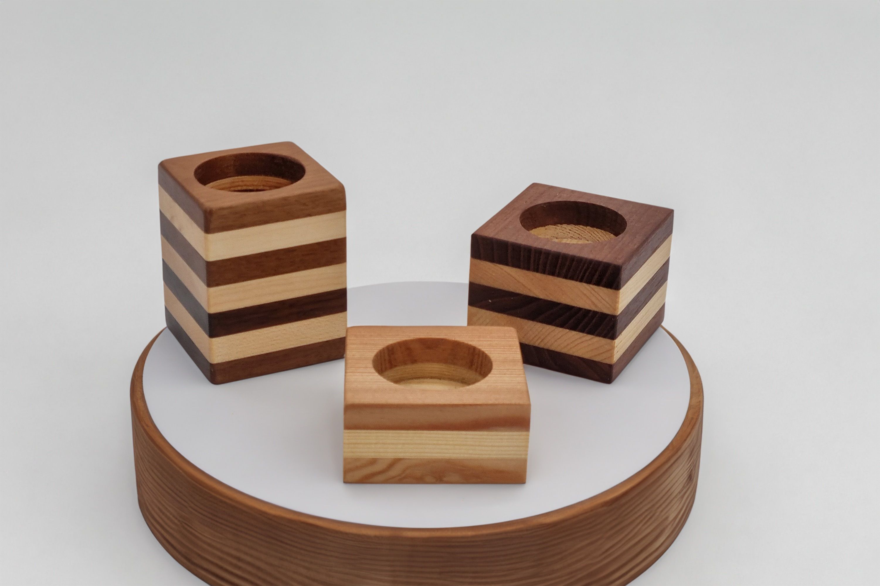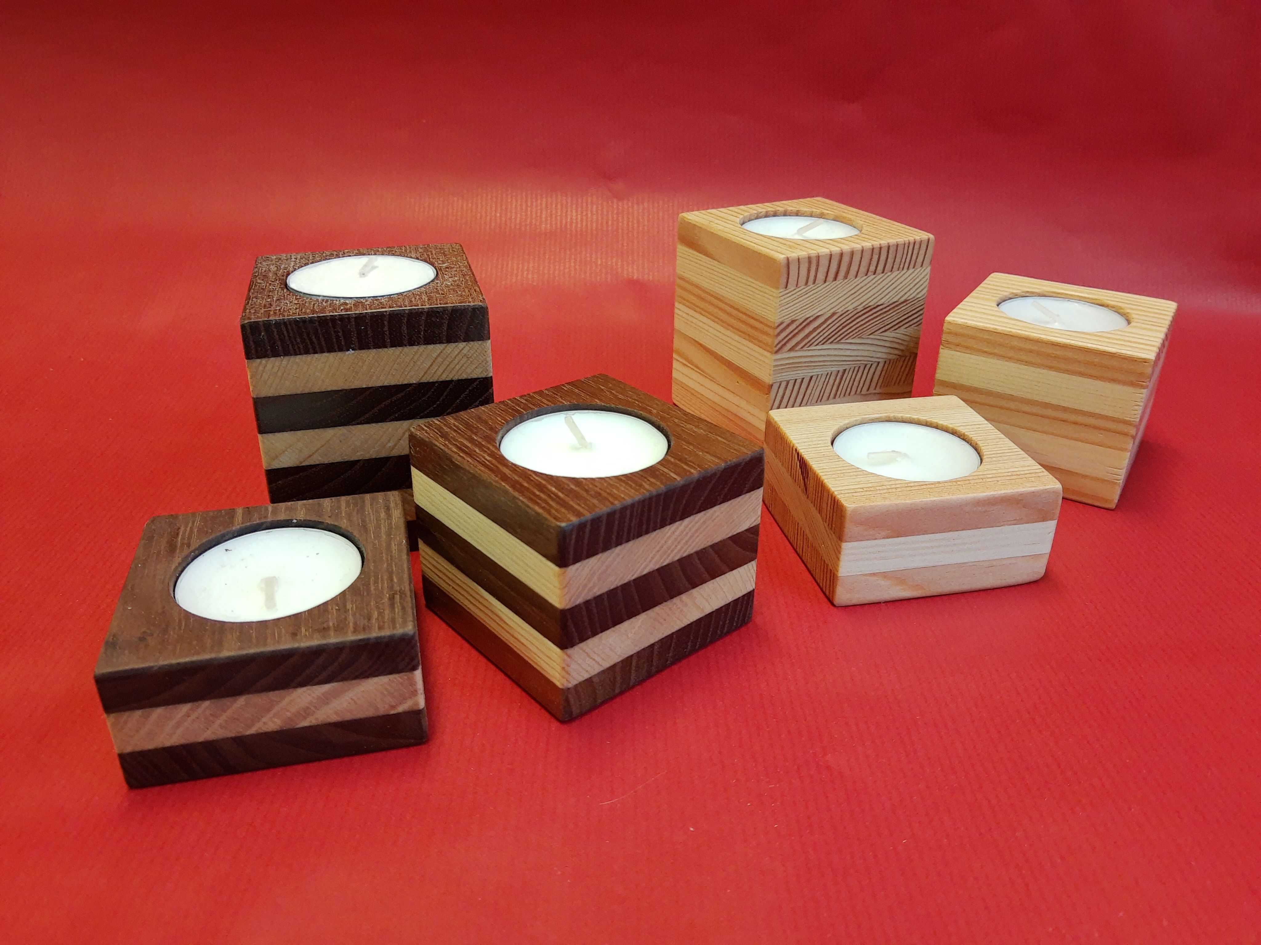 Teelichthalter aus Ahorn- und Nussholz